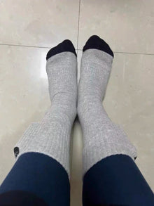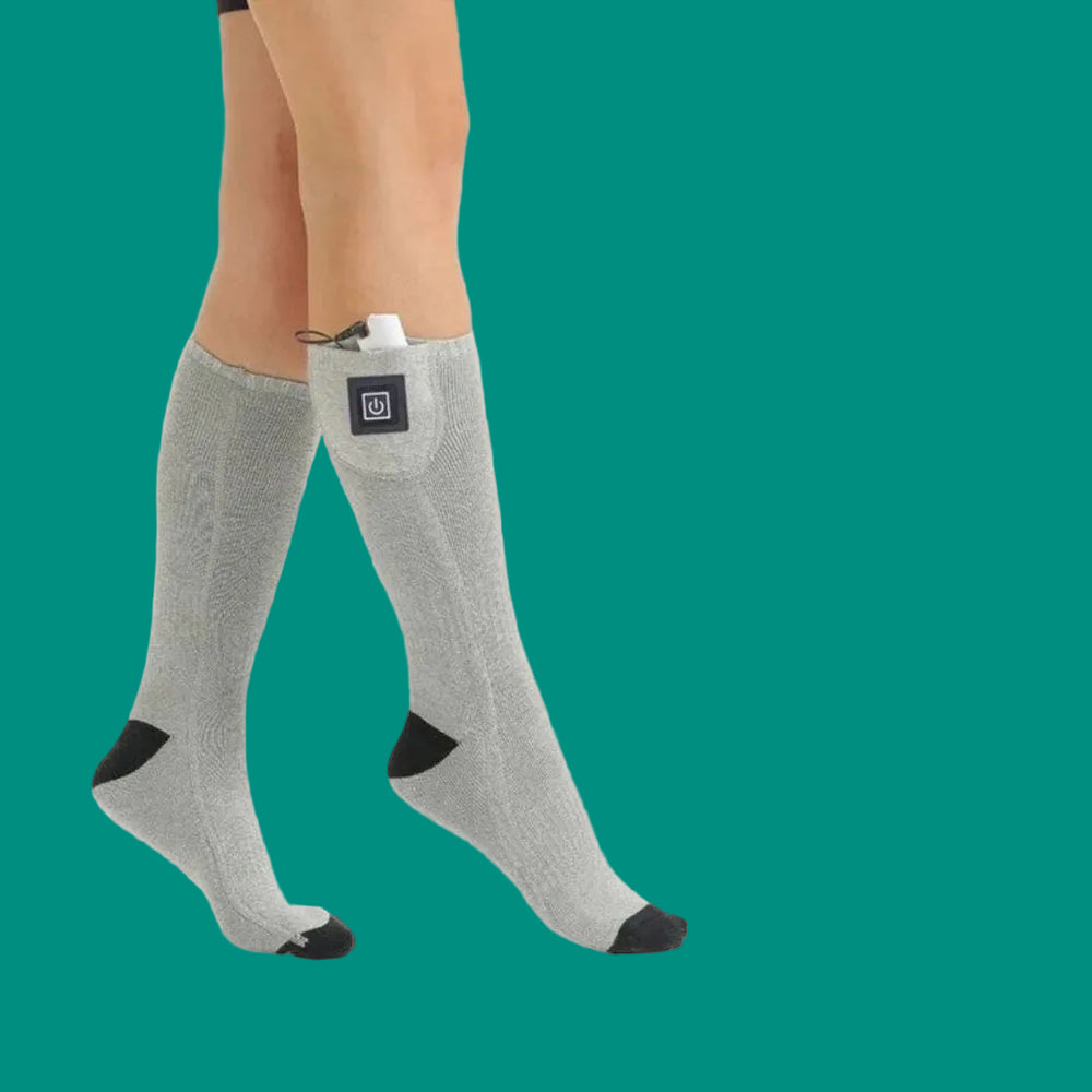 Hur fungerar de uppvärmda strumporna och hur varma blir de?: Våra uppvärmda strumpor är utformade för att vara både varma och bekväma, och passar perfekt för kalla vinterdagar. De har inbyggda värmeelement som effektivt värmer fötterna och tårna. Istället för att ge en för stark värme, har de en behaglig och jämn värme som håller fötterna torra och bekväma hela dagen.